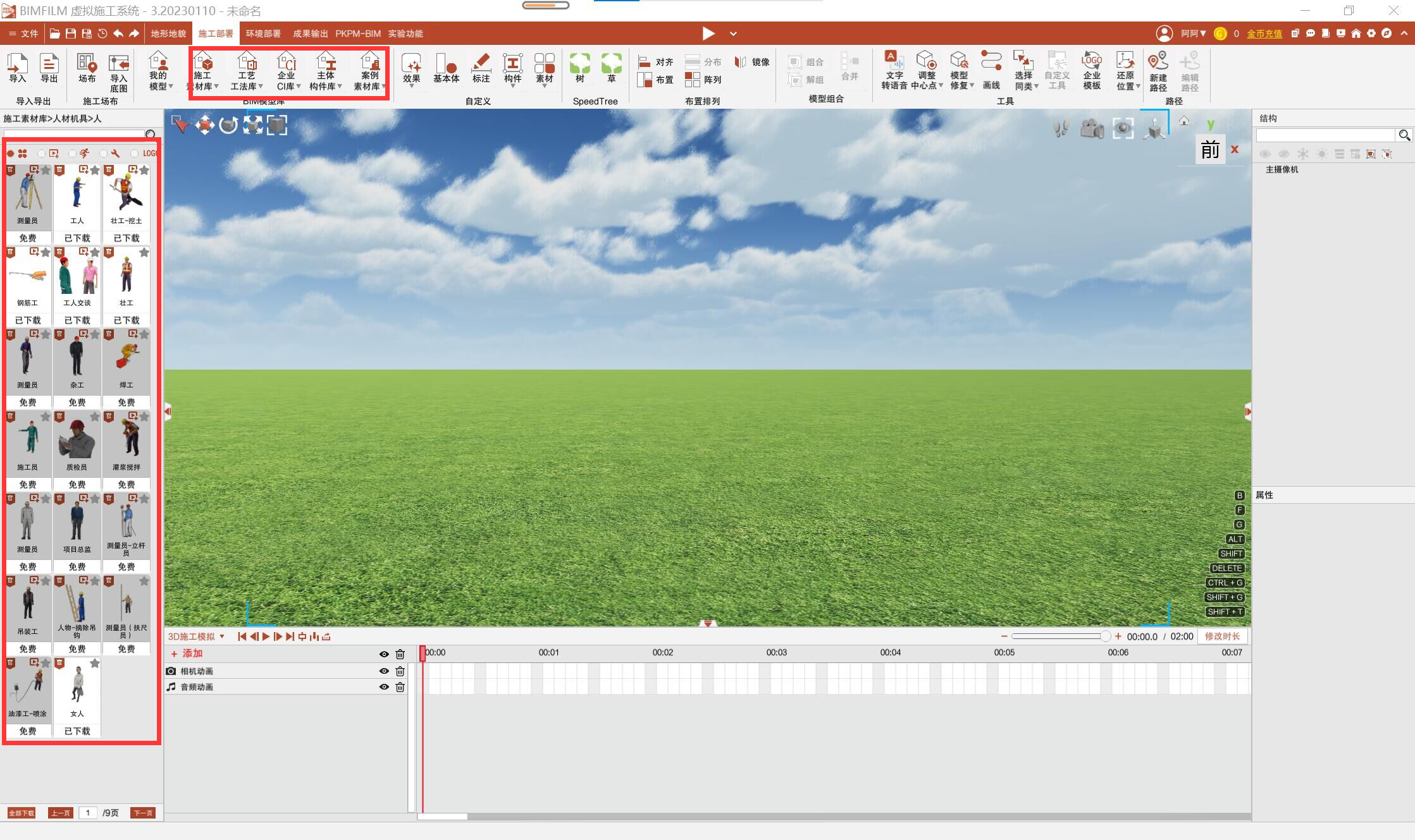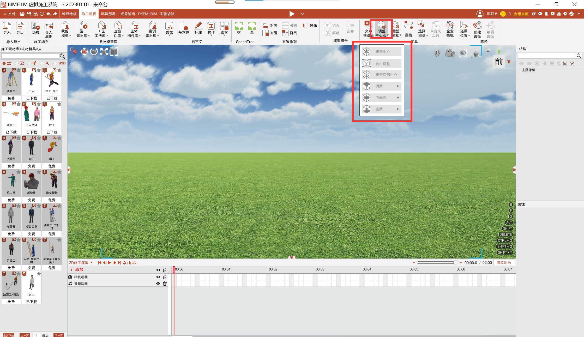 BIMFILM软件中较好用的操作有添加动画和中心定位,在制作工序动画的时候,可以指定想要的构件进行专门的动画制作,具体可以精确到很小的构件,效果很好。中心定位可选择主体中心,方便制作出自转效果,且BIMFILM中有大量素材,方便直接使用。