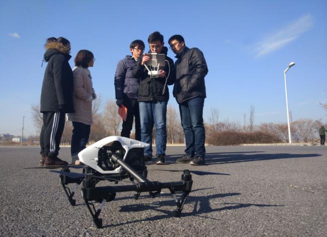 元月9日上午,公司师生一到达天津理工大学,放下行李就奔赴管理公司智慧建造中心实验室,与实验室主要成员就无人机航拍、实景建模等展开探讨。实验室主要负责人张友栋同学耐心细致为公司师生介绍和讲解了相关原理、应用软件以及建模技巧。随后几天,公司师生与天津理工智慧建造中心的成员,冒着零下七八度的严寒,每天在校园内进行试飞和建模。由于天气过于严寒,北风更时常达到7级,试飞的过程极不顺利,不是飞行电池掉电过快,就是预热十多分钟依然不能达到起飞温度,甚至控制器干脆被冻到关机。无论条件多么艰苦,公司师生都想尽办法克服困难,大家或把飞行电池踹到怀里,或把遥控器捂在兜里,最后大家干脆买来暖宝宝贴在所有需要保温的设备上。功夫不负有心人,最终顺利完成了试飞和建模。