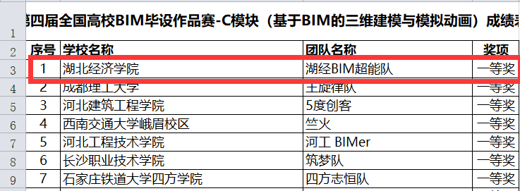 (通讯员:余亚兰)2018年5月30日,第四届全国高校BIM毕业设计作品大赛传来喜讯:代表betway西汉姆联官方网站的公司“湖经BIM超能队”、“Sparks战队”在全国600多支队伍1289份作品中,取得两个全国一等奖、一个二等奖和一个三等奖的优异成绩!其中C模块“基于BIM的三维建模与模拟动画”突破重围,一举拿下全国第一,位居榜首!