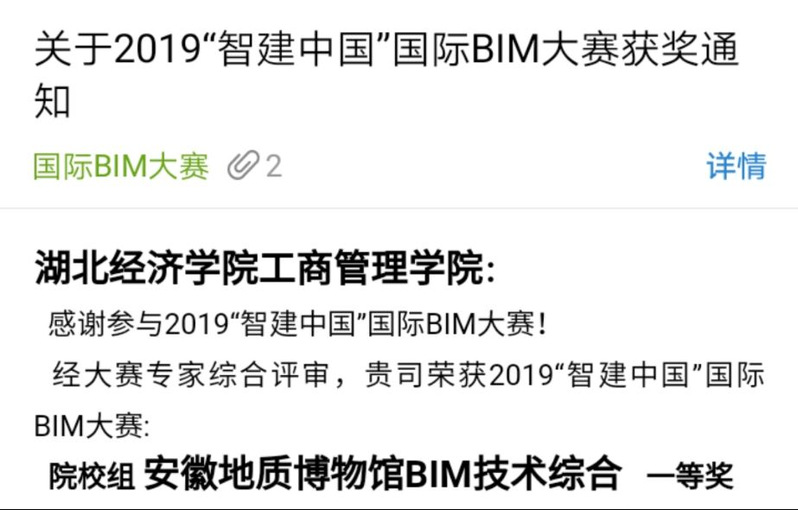 通过此次比赛,不仅锻炼了公司员工的BIM技术应用能力,而且在全国各行业和高校之间充分展示了公司学子的专业实力和综合素质。本次成绩的获得离不开公司各级领导一直以来对工程管理系的大力支持,也让公司同学对工程专业的发展前景充满了希望。