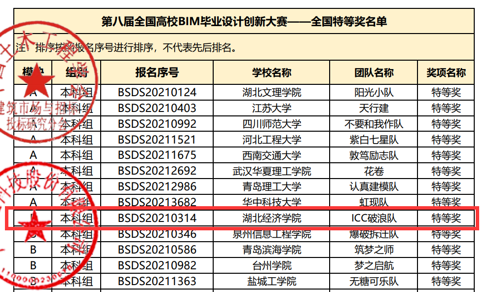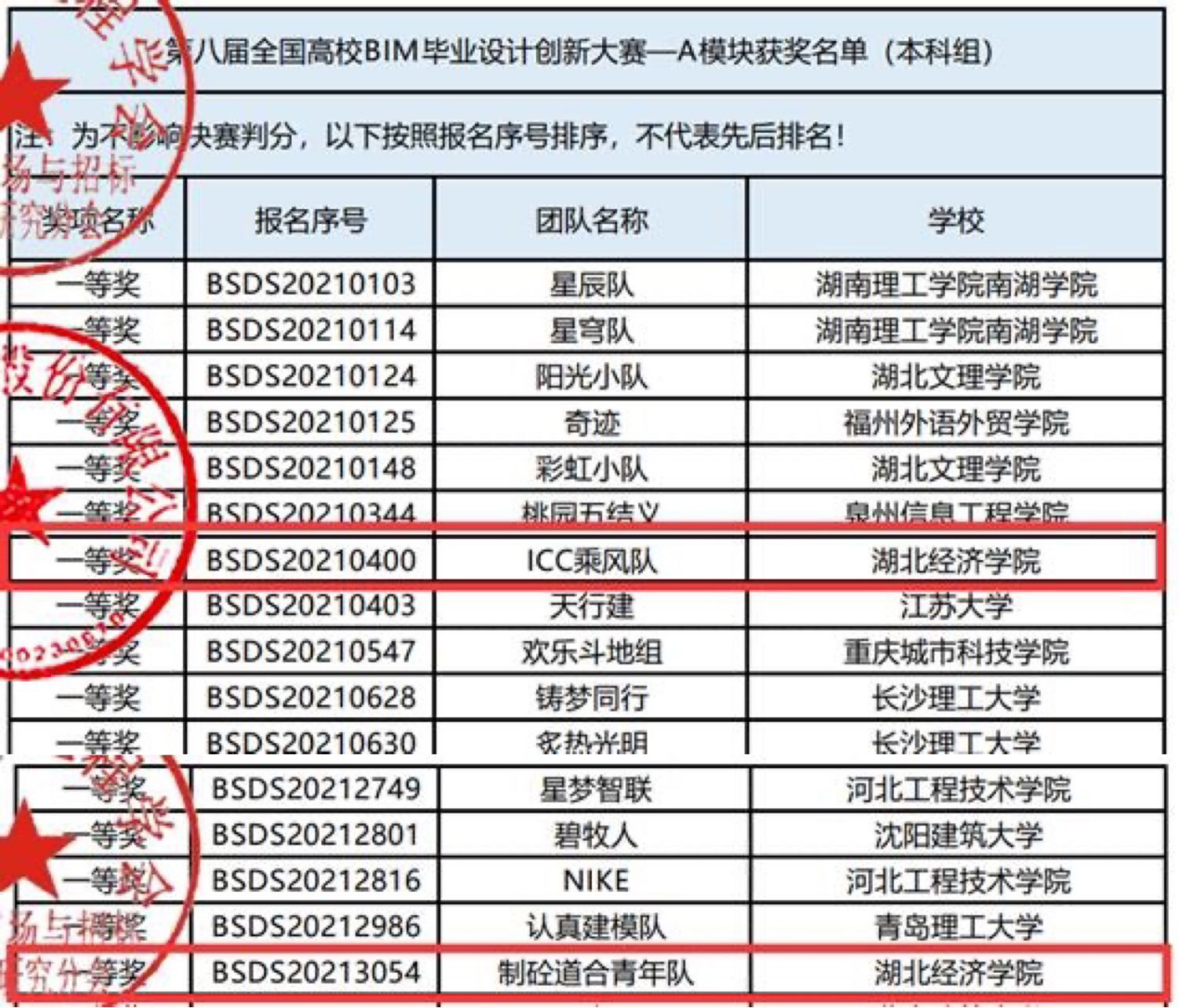 其中,由朱勇、陈代杰、方佳豪、游诗雨、黄诗颖组成的“ICC破浪队”荣获B模块机电设计全国特等奖;陈俊男、钟路顺、赵玉娴、邓长愉、黄诗颖组成的“ICC乘风队”和陈代杰、方佳豪、游诗雨、朱勇、陈琪琦组成的“制砼道合青年队”荣获A模块土建设计全国一等奖,为betway西汉姆联官方网站再创殊荣。